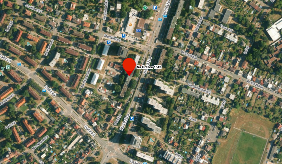 Vše, co je pro denní život potřeba, je k dispozici do pár minut od domu, nechybí ani bezproblémové parkování přímo u domu, které je na parkovací kartu.